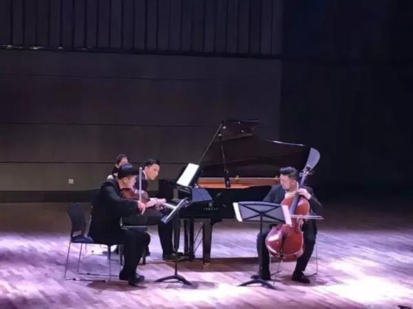 在本届尽善奖的舞台上,他们精心呈现给观众的作品是斯美塔那《g小调钢琴三重奏》,这首作品是斯美塔那对不治身亡的女儿的哀悼之歌,有在提琴交织声中钢琴深情的咏絮,有在大调的明朗中催人泪下的回忆与父爱。曲子流露着伤感的故事和深刻的思想,三位同学在音乐的流动中也自如地表达了作品的情感和内涵,有精湛的琴技的展现,更有无边默契的表露。