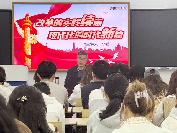 10月30日,党委委员、纪委书记李波以“改革的实践续篇,现代化的时代新篇”为题,为音教学院师生讲授《形势与政策》课。