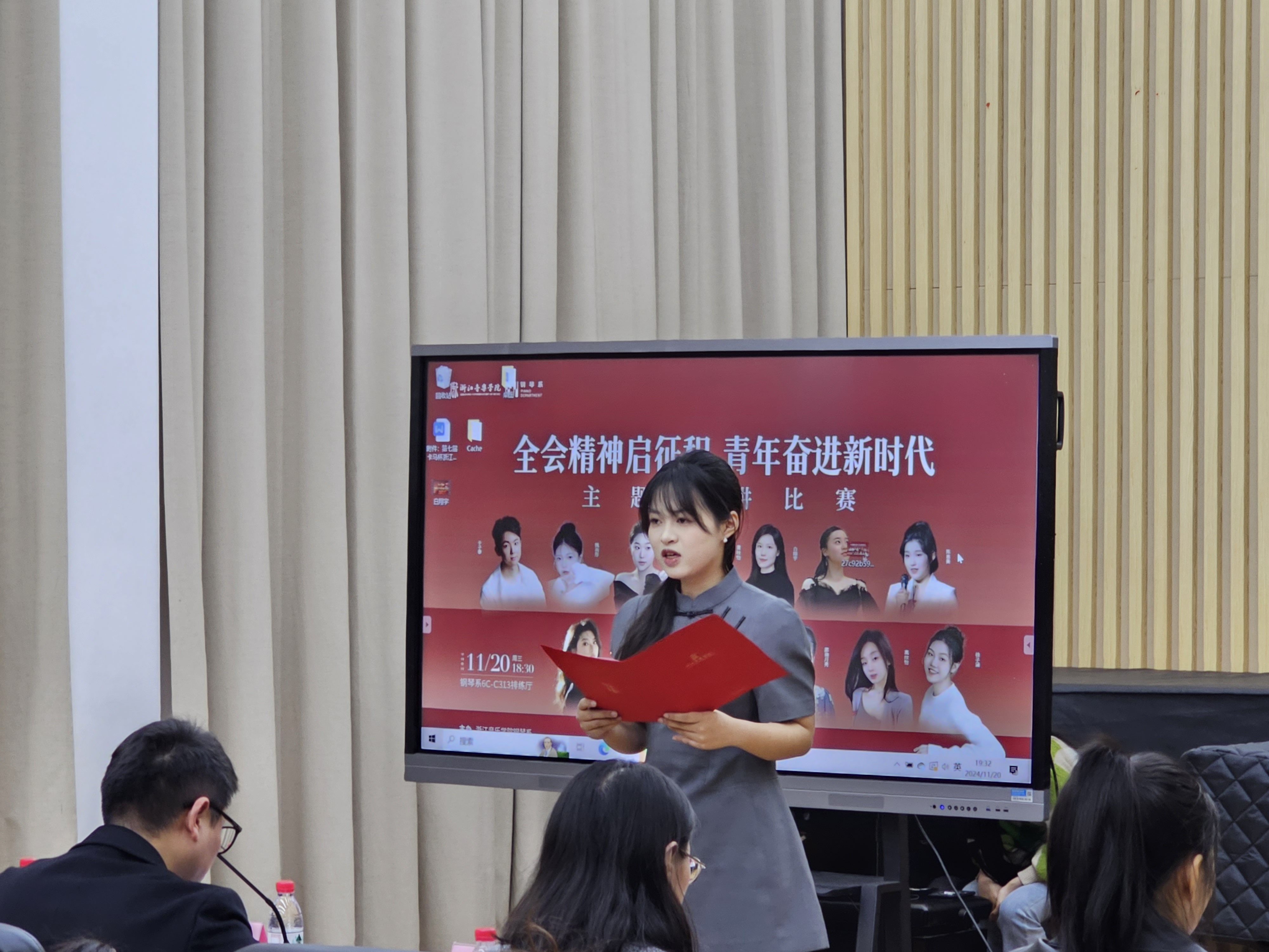 本次活动覆盖钢琴系全体本科生及研究生,经过前期的精心筹备,班级举荐与选拔,共14名学生脱颖而出,晋级决赛。选手们讲述着与自身生活、学习息息相关的“浙江故事”,将心中的家国情怀娓娓道来,用富有感染力的故事唤醒青年学子内心深处的壮志豪情,展现了当代青年的精神风貌和担当精神,表达对实现中国梦的坚定信念和积极贡献力量的决心。