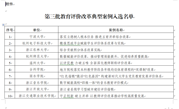 近日,浙江省教育厅公布了第三批教育评价改革典型案例的评选结果,我校报送的“数字赋能高校‘四维一体’的音乐教育评价模式”案例成功入选,也是我校首次入选全省教育评价改革经典案例。