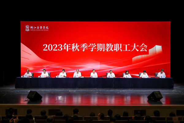 金秋送爽、丹桂飘香。新学期报到第一天,9月16日下午,学院2023 年秋季学期教职工大会在学院大剧院举行。学院党政领导班子全体成员,各单位、部门负责人及全体教职员工参加会议。