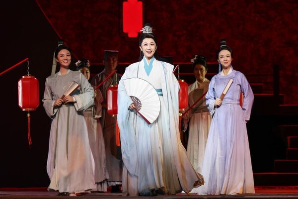 傍晚时分,伴随着青年指挥家崔媛媛的节奏,优美的旋律将人们的视线拉回到千年宋朝——只见李清照深情地抚着古琴,剧中人赵明诚、李格非、青梅、海棠、项羽、卖花郎众人相继慢慢向她靠近……李清照于梦中会见故人的场景呈现在眼前。
